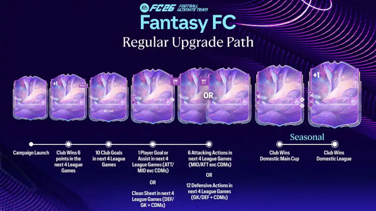 A: FC 26 Fantasy cards are Special items given to selected players, replacing their regular cards at set times. These items receive rating and attribute boosts and can earn additional upgrades based on team wins, goals, assists, cards, clean sheets, contributions in the next four domestic matches, and by winning domestic titles.