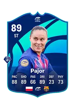![]() | Ewa Pajor continued her strong Liga F campaign for FC Barcelona, scoring 11 goals and providing 3 assists in 12 league appearances so far this 2025-26 season, with 31 shots on goal and 10 starts plus 2 substitute appearances, maintaining her role as a key attacking threat for her team. |