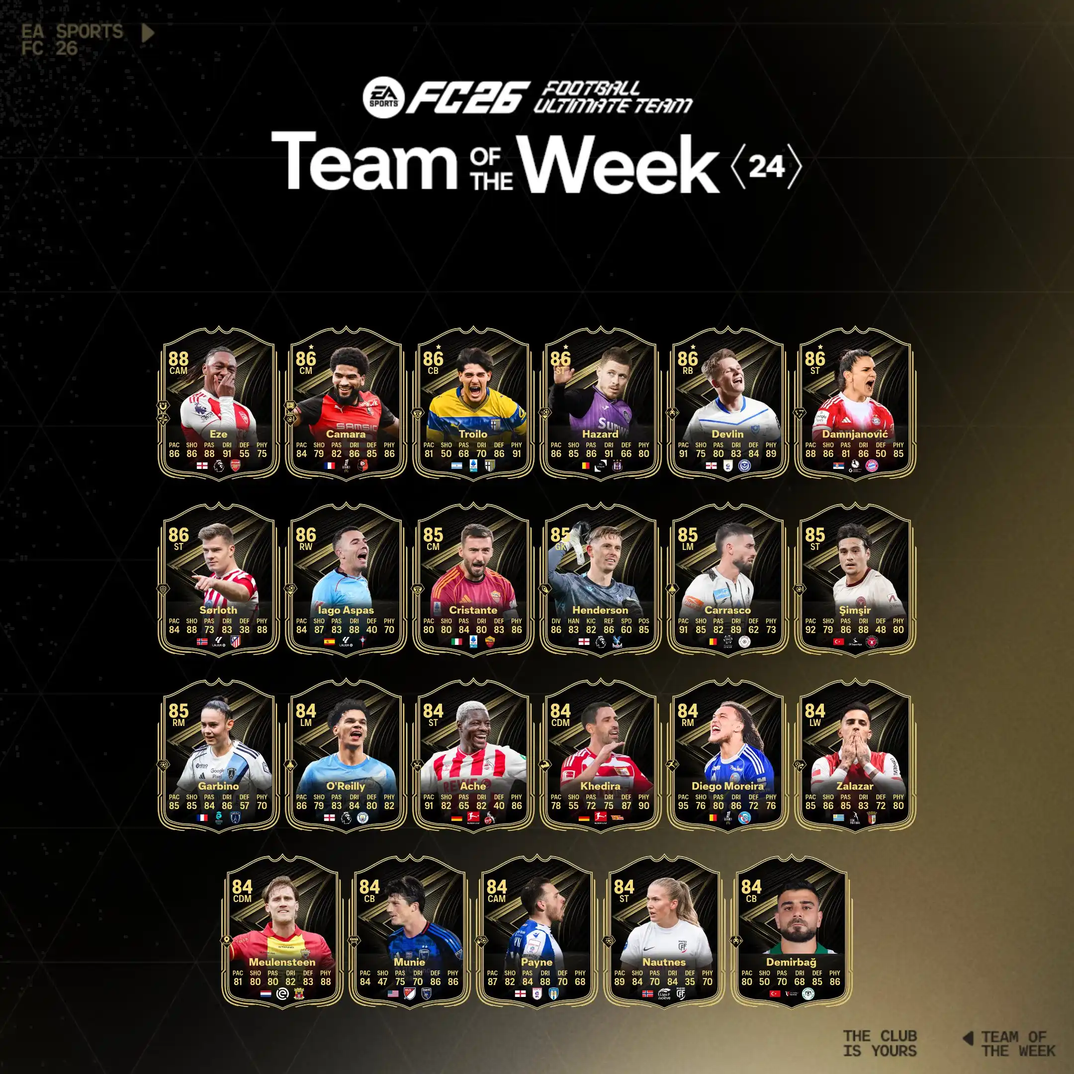 | 18:00 2 days | Star Performer Batch 6 F Valverde | 90 | Star Performer A Sørloth | 89 | Star Performer Barış Yılmaz | 89 | Star Performer D Zappacosta | 88 | Star Performer | |