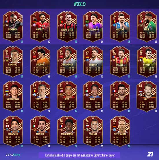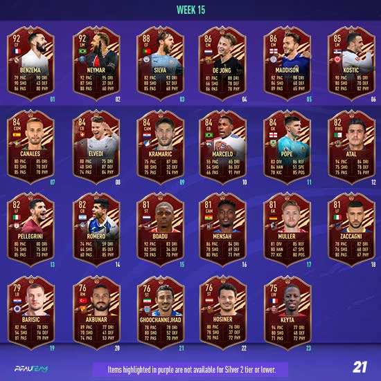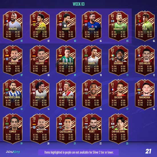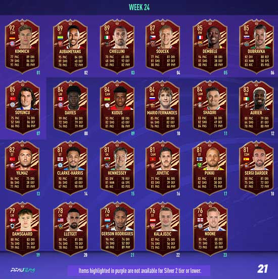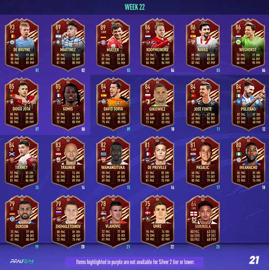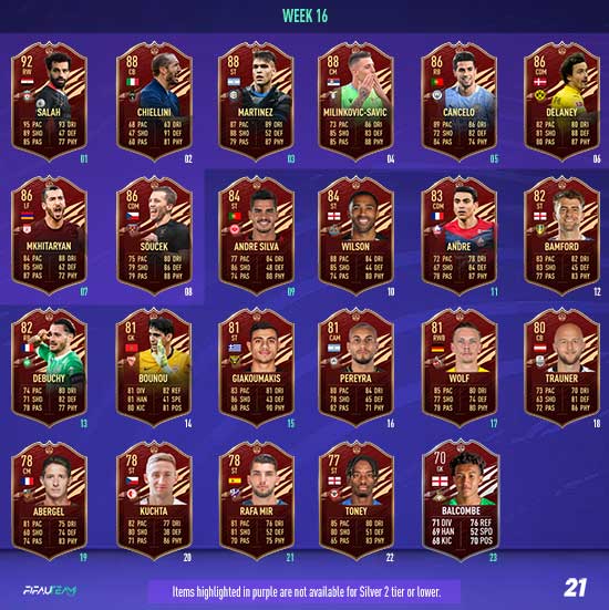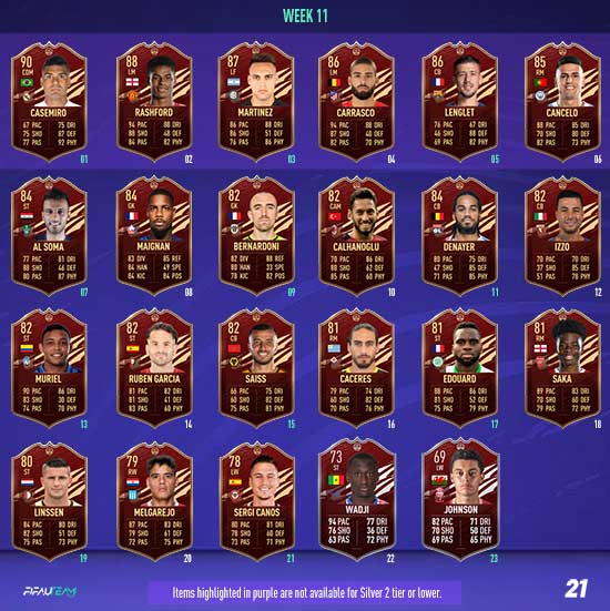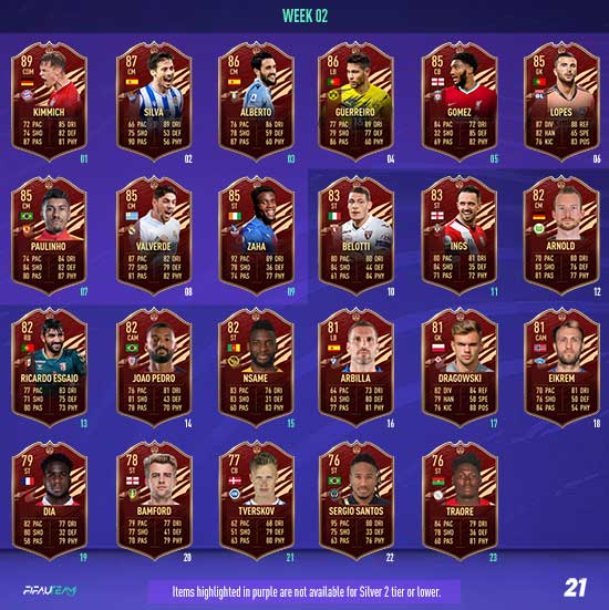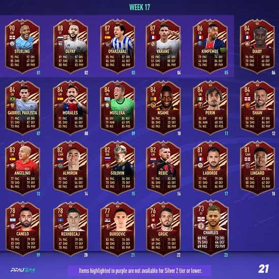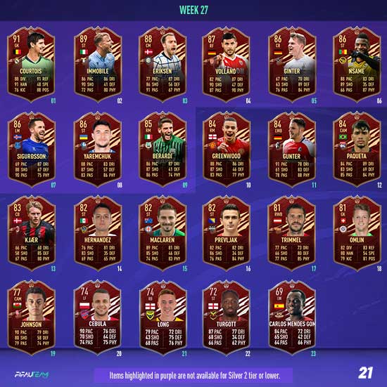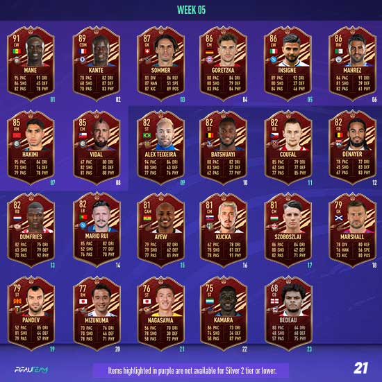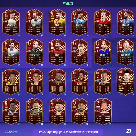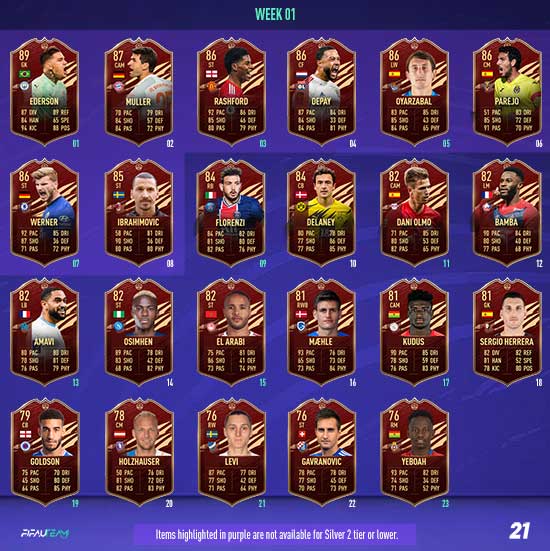 In each Player Pick, a minimum of one selection will be from EFIGS leagues (Premier League, Bundesliga, La Liga, Serie A and Ligue 1). All TOTS items will have a minimum OVR of 89.