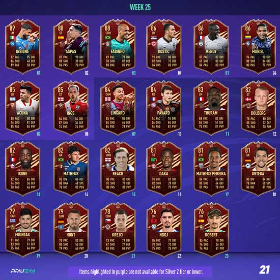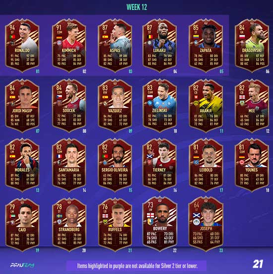 Click or tap on the week below to see its details, including the qualification times and the player picks. All release times shown in this page are indicated in the UK time zone.